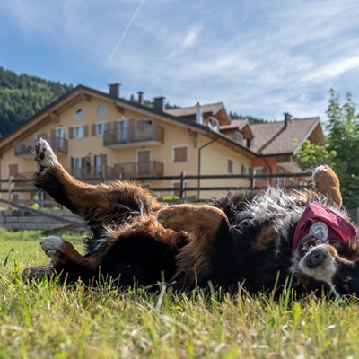Alcuni appartamenti possono ospitare un solo cane di taglia grande; altri possono ospitare due cani (di cui uno solo di taglia grande) con supplemento. Nei dintorni ci sono ampi prati per correre, passeggiate nei boschi da fare insieme e trekking perfetti per le 6 zampe!